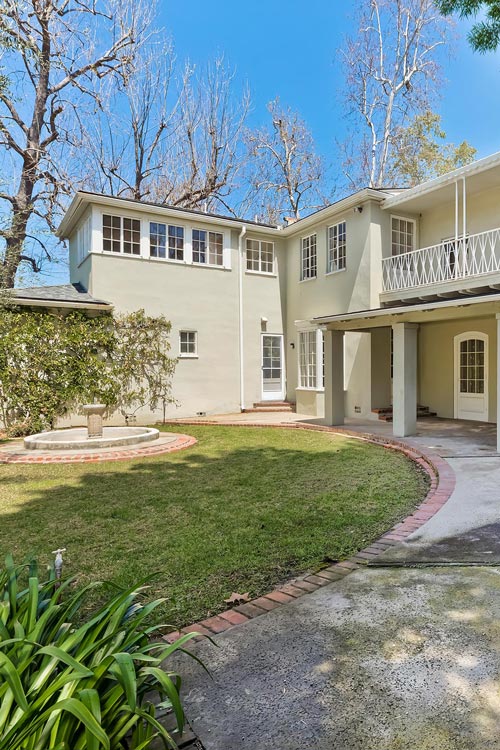 This is an extra ordinary opportunity to renovate and update a classic Little Holmby estate on an expansive flat lot. The Patterson house, a traditional Monterey revival designed by noted architect H. Roy Kelley, boasts all the hallmarks of his classic style of well-proportioned rooms, hardwood floors, crown moldings, arched doorways and copious amounts of natural light. A very stately home set back from the street, one steps into a formal entry way with sweeping stairway to the upstairs before you and step-down formal living to the left with original peg and groove floors, built-ins around the windows and a generous fireplace. To the right of the entry, along the main hallway, is a spacious formal dining room again with original peg and groove flooring, crown moldings, chair rails and inviting bay window, a cozy paneled den with fireplace, built-in book shelves and hidden "Prohibition" wet bar and at the end a gracious center island kitchen with eat-in breakfast area. Also included on the ground floor is a powder room, ample laundry room and private maids and bath. Upstairs are 4 family bedrooms and 3 baths including sizeable primary suite with fireplace, combined dressing/closet area and full bath. The back of the house opens to a sweeping, verdant yard with covered brick lined concrete patio, grassy play area, fountain and large motor court. Located just across the street from Holmby Park, this true diamond in the rough is just minutes from Westfield entertainment center in Century City, tony Beverly Hills shops/restaurants, bustling Westwood Village/UCLA and in the highly desirable Warner Avenue school district.